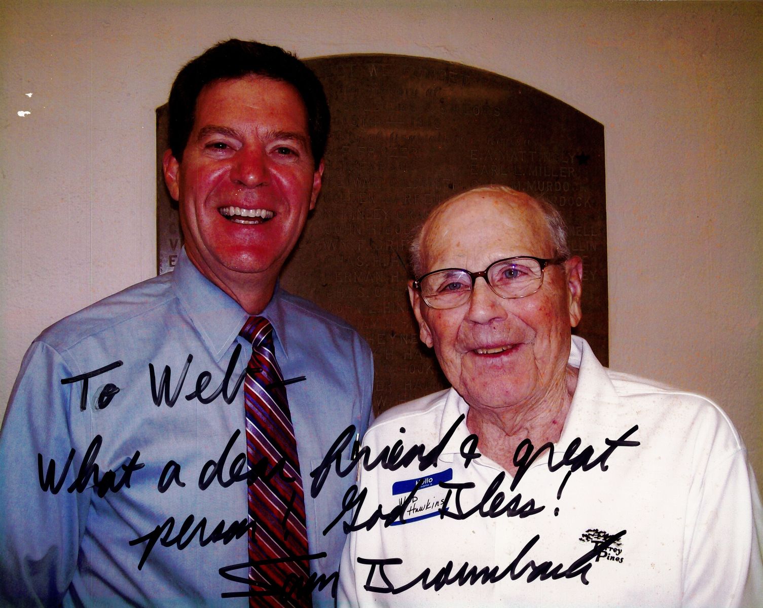 In his later years, Web Hawkins faced a daunting health challenge that tested his quiet courage. After years of playing golf without a hat, Web developed scalp skin cancer that eventually penetrated his skull. The recommended treatment was radical: an 11-hour surgery to remove the top of his skull and replace it with a cadaver bone.